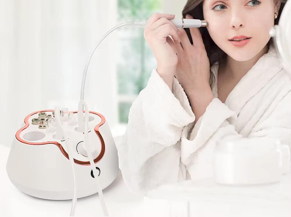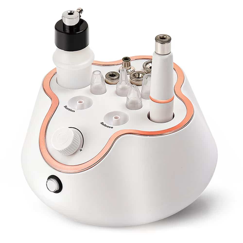 A microdermabrasion machine is a professional-grade skincare device designed to exfoliate and rejuvenate the skin. It uses fine crystals or a diamond tip to remove dead skin cells, promoting collagen production and improving skin texture.