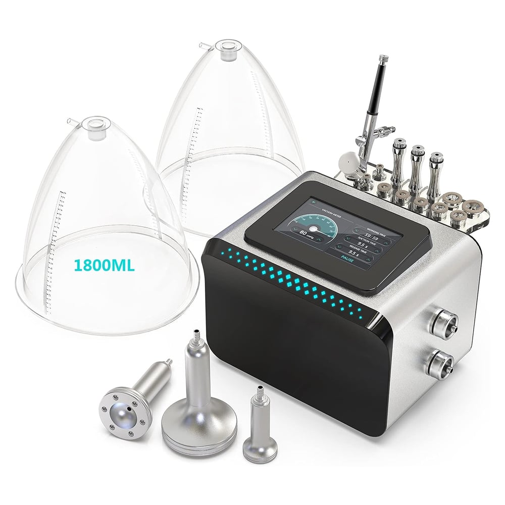 The machine's full-body treatment capabilities set it apart, offering everything from facial lifting to body contouring. The inclusion of 34 cups and 3 pumps provides exceptional versatility for addressing multiple skincare concerns.