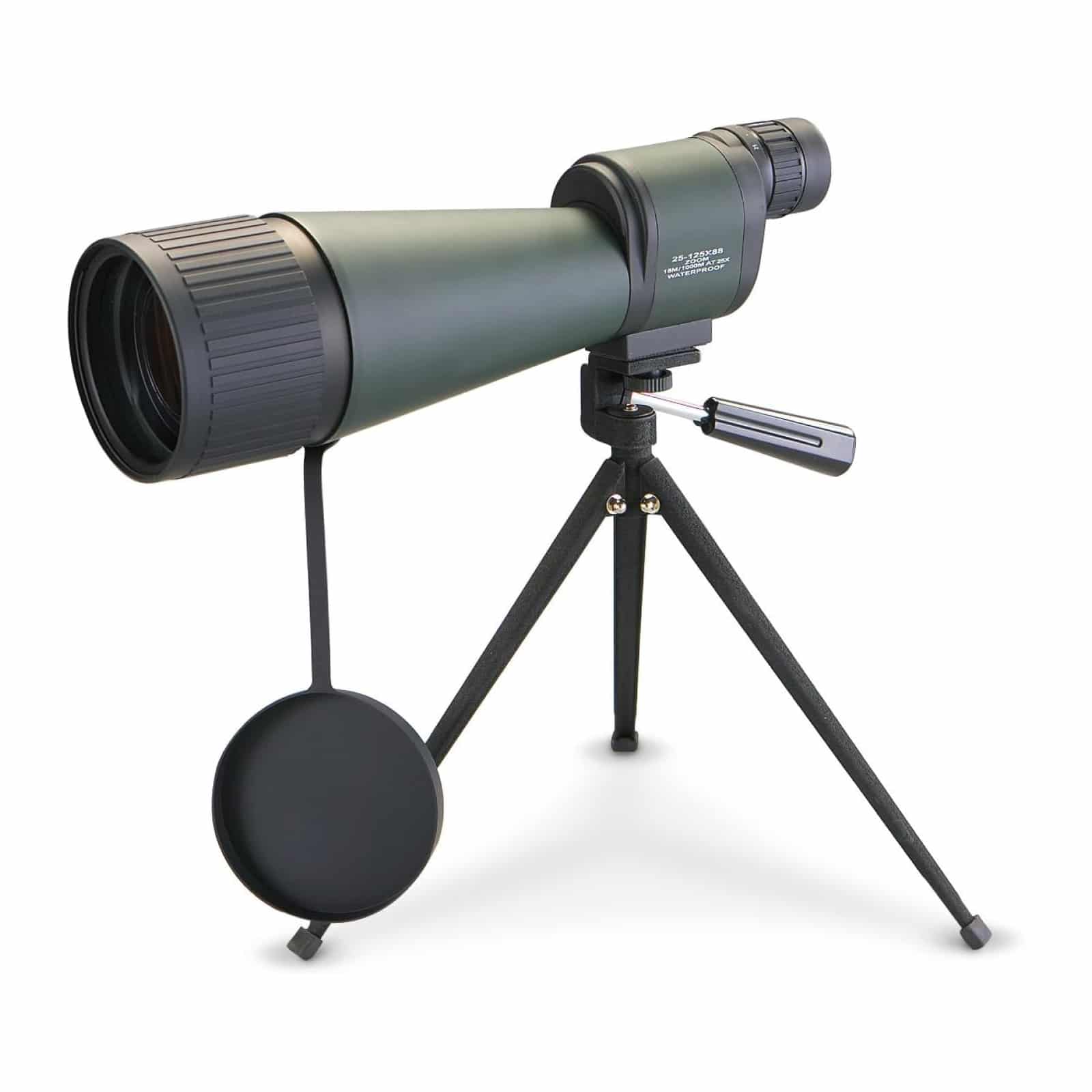 The Barska Spotting Scope offers a powerful 25-125x magnification range, making it suitable for detailed observations. The fully-coated optics and large 88mm objective lens deliver bright and clear images, though stability becomes an issue at maximum zoom.